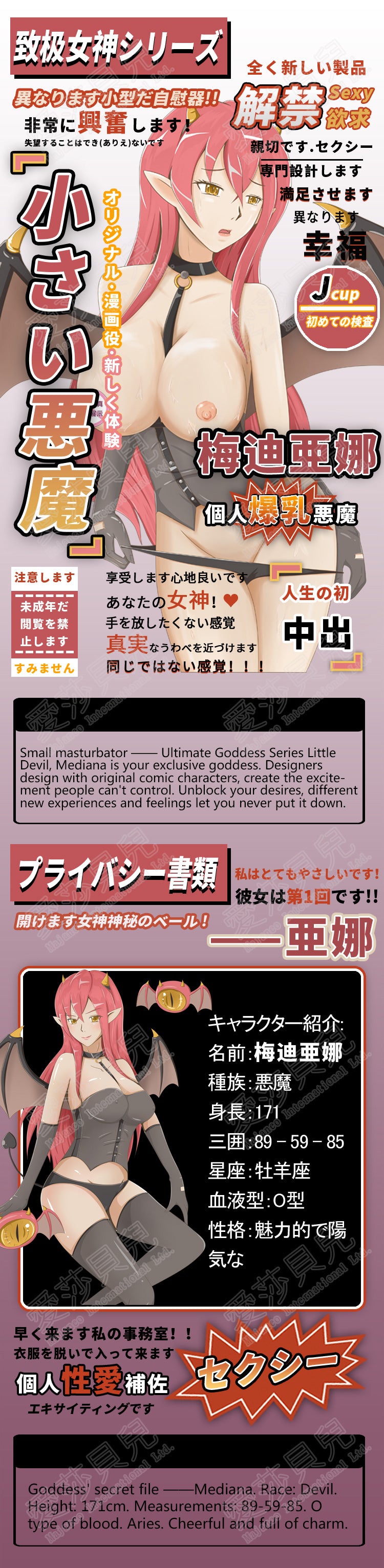 Little Devil Mediana is attracted to one thing, and only you can give it to her. Tight and stimulating, with lots of suction, the sounds this toy make are amazing! J cup breasts, with gorgeous fantasy art, will make sure you keep coming back to please the devil.