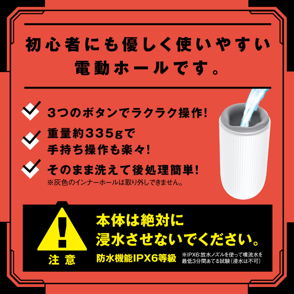 High quality electric masturbator with throat blowing specifications! 3 patterns of deep throat rotation that moves and wriggles & 5 patterns of deep throat suction that tightens and tightens & twitching deep throat vibration 10 patterns of superb techniques total 263 variations! This is a perverted electric masturbator that feels like a vacuum blow job while stirring your throat that is twitching and twitching. Easy to operate with 3 buttons & weighs about 335g, so it is easy to operate by hand & can be washed as it is for easy post-cleaning! This electric hole is gentle and easy to use even for beginners. The hole part feels smooth and smooth like human skin. It is extremely stretchy and durable, so it will not break even if you use it violently. Double stimulation of the mucous membrane stimulation of the ultra-fine folds that fit the skin and the infinite stimulation of the ultra-pimples on the sensitive glans! Because it comes into direct contact with the skin, we use high-quality soft silicone with a focus on safety and feel. Waterproof function IPX6 grade. Quiet design ≦65dB. USB cable for charging included. Inspection number: 2402206