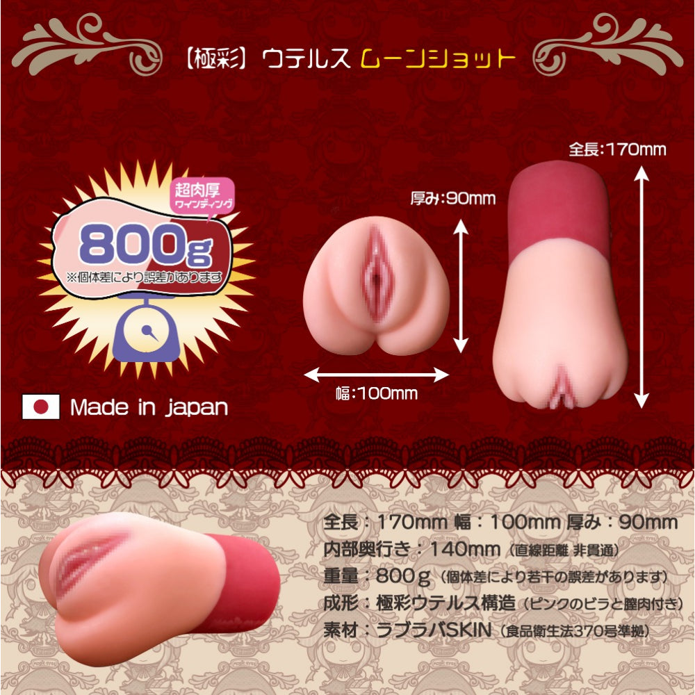 The "ultra winding" is made possible by the super thick material, and as you push your way through the alternating overlapping flesh wing spots, you will reach the opening, and while the tip is enveloped in the moon shot area, penetrate into the deepest part. The thick, heavy 800 gram body is beautifully molded in brilliant colors, and the material used is "Love Lover", which complies with Food Sanitation Law No. 370, making it a full-spec handhole.