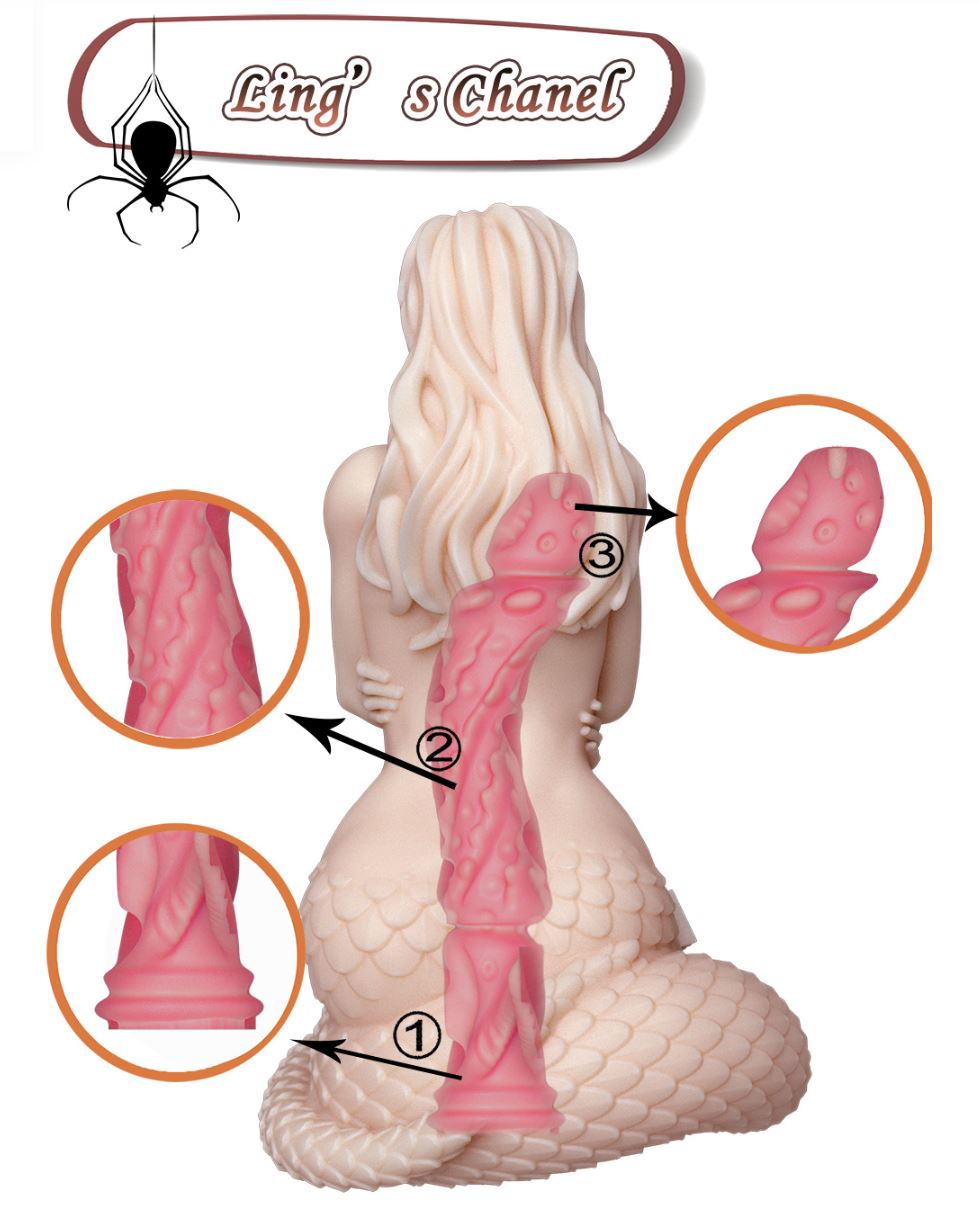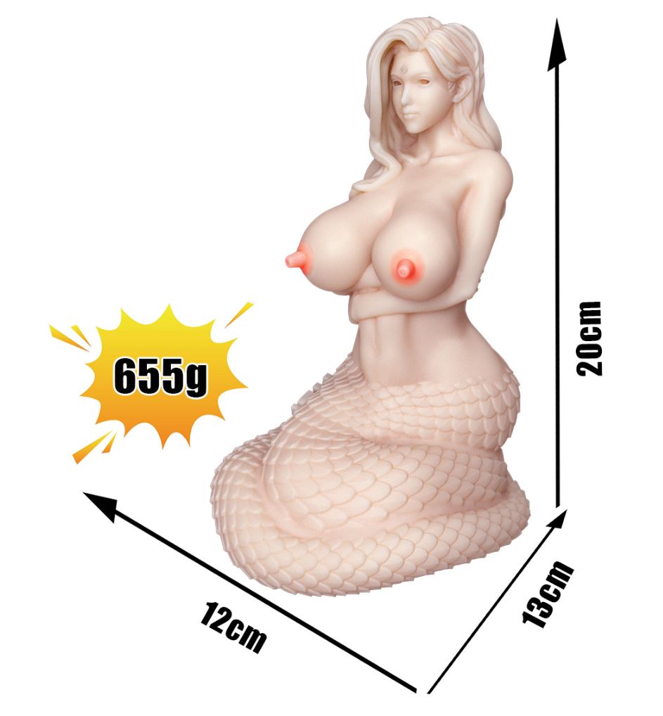 This silicone masturbator features a seductive Lamia design, with large breasts, perky nipples, and exquisite detail, providing an exciting and toe curling experience.