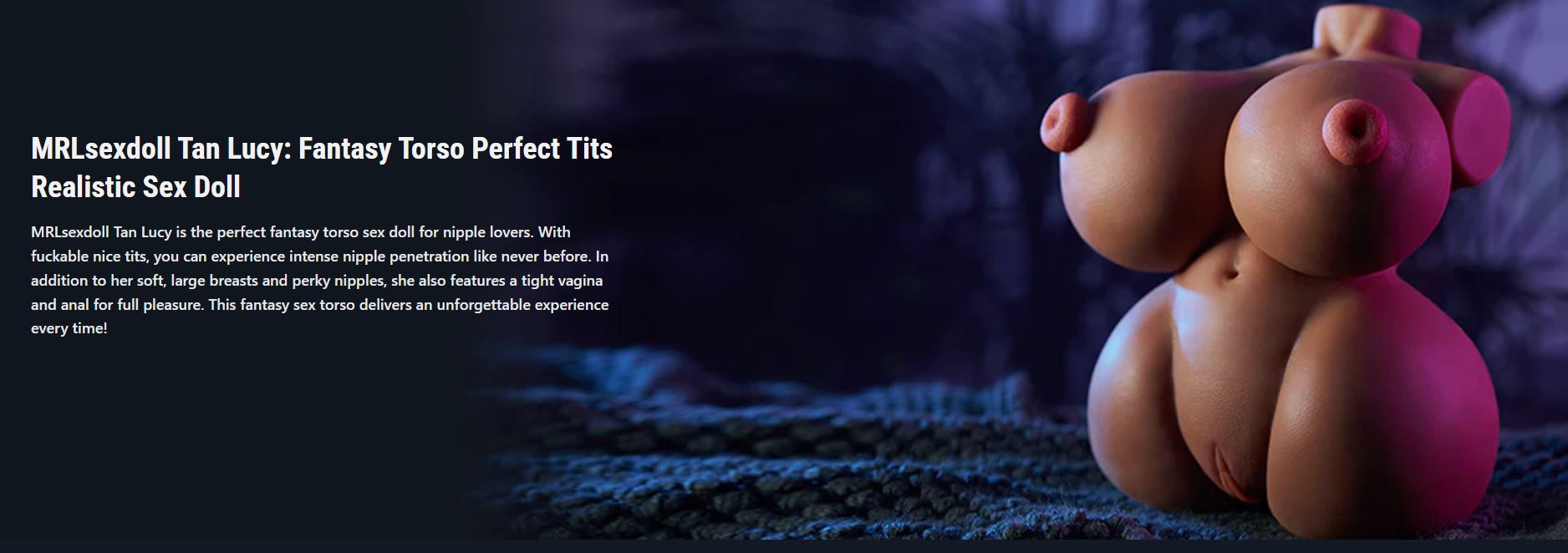 MRLsexdoll Tan Lucy is the perfect fantasy torso sex doll for nipple lovers. With fuckable nice tits, you can experience intense nipple penetration like never before. In addition to her soft, large breasts and perky nipples, she also features a tight vagina and anal for full pleasure. This fantasy sex torso delivers an unforgettable experience every time!