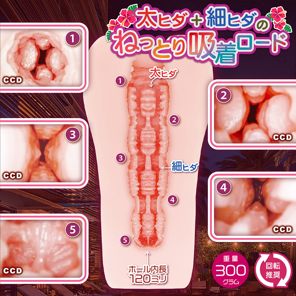 Rotation is recommended! A sticky, suction rod with thick and thin folds! Sweet Rapture is a masturbator with four raised folds running from the entrance to the very back. The thick folds and thin folds arranged on the top, bottom, left and right will stickyly wrap around you.