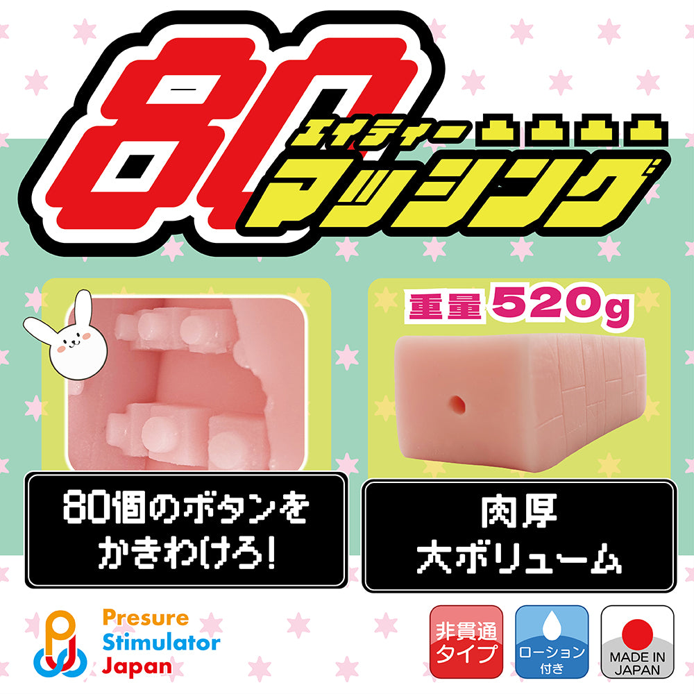 Rapid fire with button blocks! Rapid fire! Rapid fire! Continuous stimulation with 80 buttons! Buttons of various sizes will stimulate you! Ultra-soft material x square button edges with a three-dimensional structure! A large volume, approximately 520g thick hole. 80 rapid fires! Tatat ...