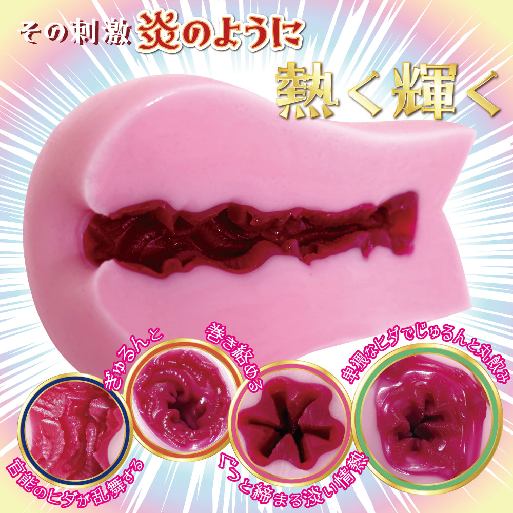 Combining a soft outer layer, with a harder inner layer, and an irregular pattern, produces a fantastic amount of suction and stimulation. A beautiful marriage of beauty and passion.