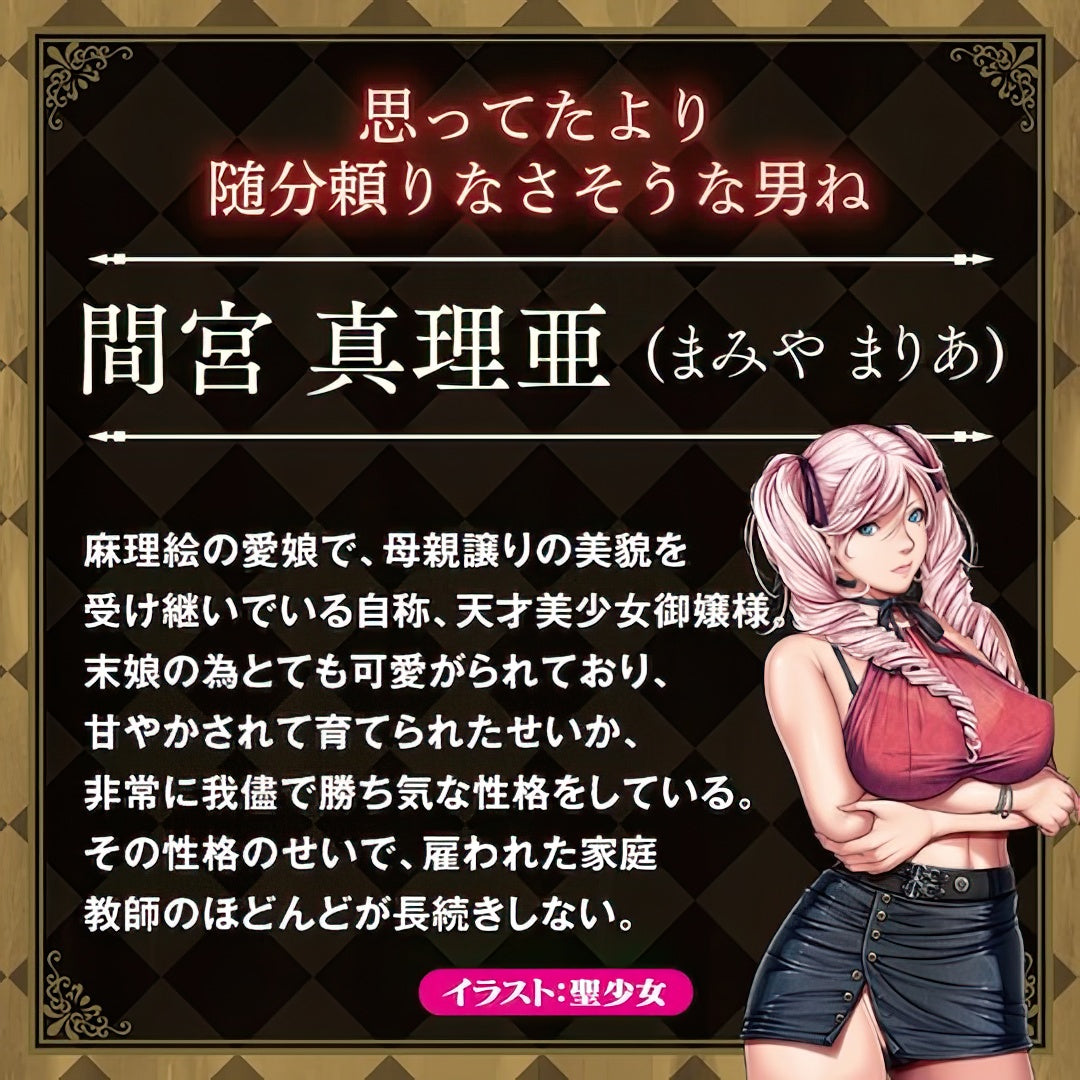 Marie's beloved daughter, she inherited her mother's good looks and calls herself a genius beautiful young lady. As the youngest daughter, she is loved very much, but perhaps because she was raised in a pampered environment, she has a very selfish and competitive personality. Because of this personality, most of the tutors she is hired for do not last long. Maybe this time is different. How long will you last?