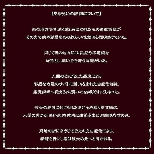 The only way to regain the pure heart that is sealed deep within her is to have a human man pour a "white liquid" into her body and refine it. Through the white magic that was barely released in a difficult situation, those who performed refinement were led to her.